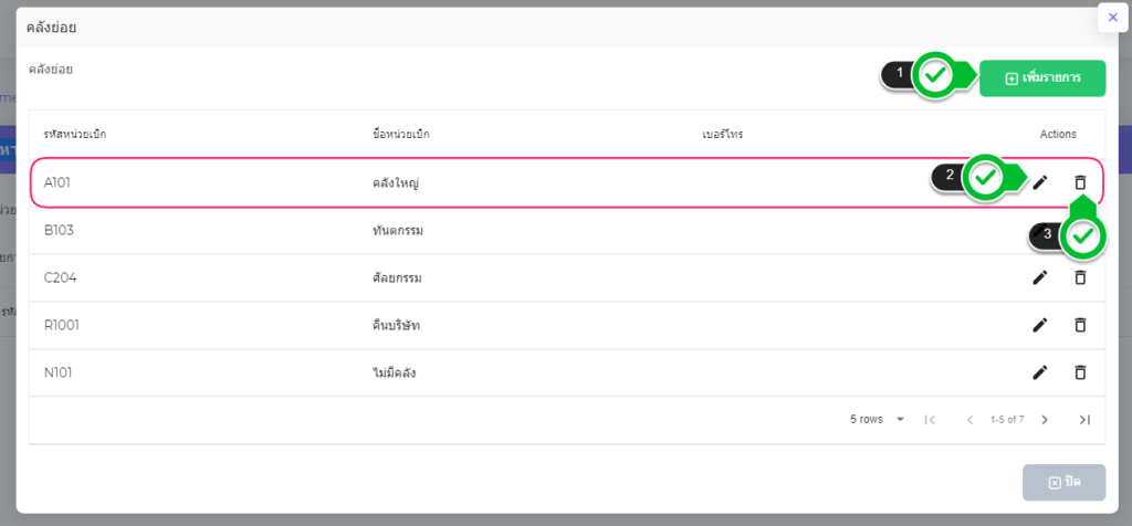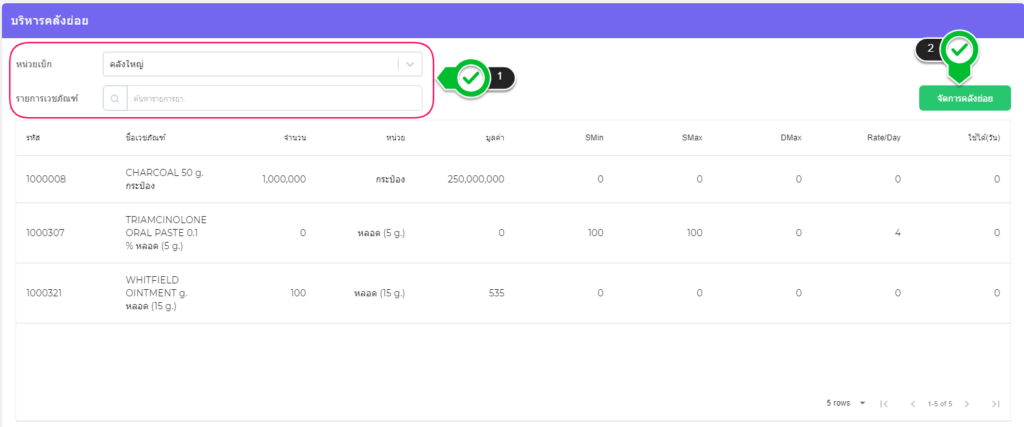 – สามารถจัดการคลังย่อยได้โดยกดปุ่ม “จัดการคลังย่อย”