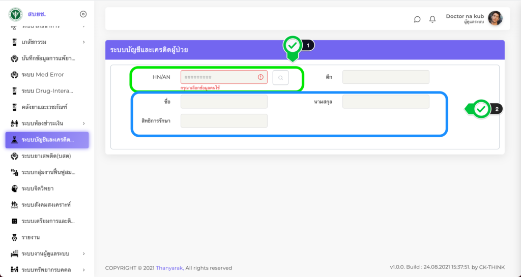 ข้อที่ 1 สามารถค้นหาข้อมูลบัญชีของผู้ป่วยได้